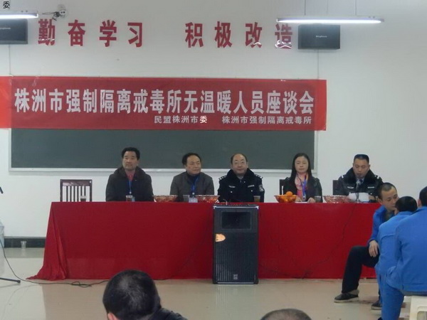 吸毒人员,具有违法者、受害者、病人等三重身份,对社会、家庭和自己都造成了极大的危害。他们因染上毒品,搞得家庭破裂、妻离子散,从而成为被遗弃的人。在株洲市强制隔离戒毒所内,就有60名这样的学员,因得不到家庭的关爱,他们被称之为“无温暖人员”,下雪了,过年了,也没有人给他们送衣物。民盟株洲市委了解到这一情况后,组织盟内的爱心人士株洲市友联建筑有限公司经理周新建,为这些学员每人购买了新棉袄。当他们接过棉袄穿在身上,暖暖的他们声情并茂、热泪盈眶地用《重头再来》、《感恩的心》等高亢激昂的歌声,唱出了他们渴望得到温暖、重新做人和感恩的心声。