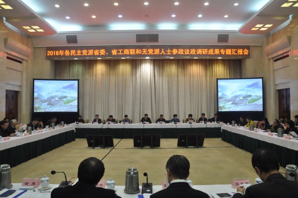 会上,中共省委常委、常务副省长陈向群通报省直有关单位采纳落实2015年各民主党派省委、省工商联和无党派人士参政议政专题调研成果情况。