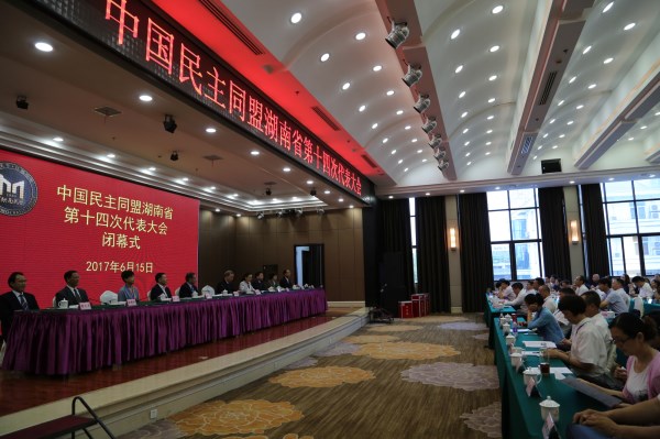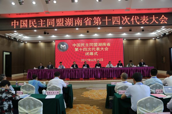 中国民主同盟湖南省第十四次代表大会在圆满完成大会各项议程后,于6月15日上午在长沙市枫林宾馆举行闭幕会议。