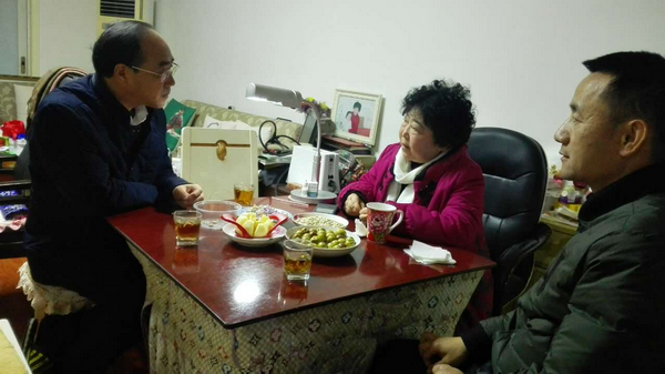赵为济一行首先来到邵阳学院专家楼,看望民盟市委第七届主委、原市政协副主席傅治同,傅老是位德高望重的学者,深受盟员和社会各界的尊崇。赵为济同傅老进行了亲切交谈,一一话询问傅老和老伴“身体怎么样?” “在哪过年?” “儿孙什么时候回来拜年?”看到傅老精神矍铄、思维敏捷、视野开阔、谈吐清晰,赵为济感到很欣慰,他反复叮嘱傅老,一定要保重保养好身体,幸福安康。傅老很关注民盟事业的发展,关心天下大事,言谈举止中浸透着一个老盟员浓浓的家国情怀,祖国走向强大、人民日益幸福的自豪感溢于言表。