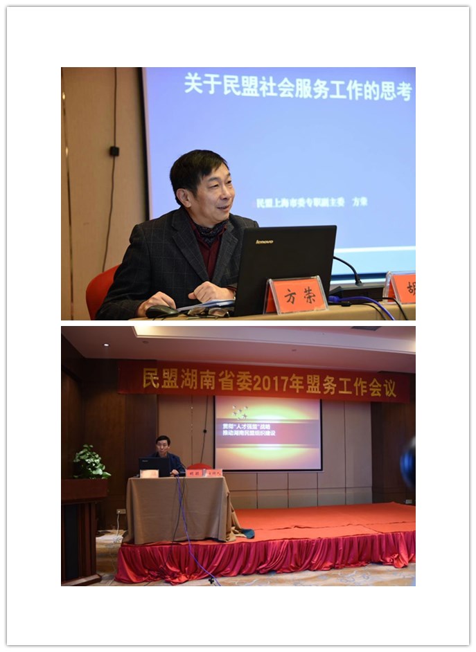 民盟湖南省委2017年盟务工作会议于2月15日——17日在邵阳武冈市召开,会议由民盟湖南省委主办,民盟邵阳市委协办。省政协常委、民盟湖南省委专职副主委胡颖主持会议并讲话,民盟湖南省委副主委、邵阳市人大副主任赵为济出席会议,邵阳市统战部副部长谢续才应邀出席会议并致辞,上海市政协副秘书长、民盟上海市委专职副主委方荣应邀讲座。