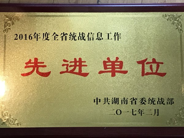 近日,湖南省委统战部通报了2016年度全省统战信息工作评选情况,民盟省委机关在全省7个民主党派省委和14个市州统战部排名居于前列,被评为“全省统战信息工作先进单位”。