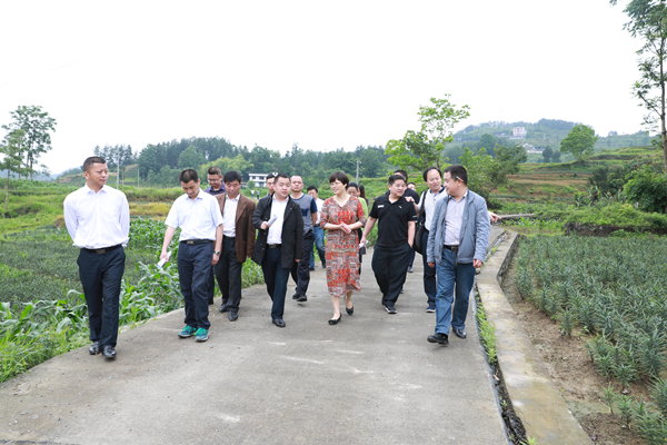 刘春阳(右四)一行调研龙山县石牌镇大康社区百合产业