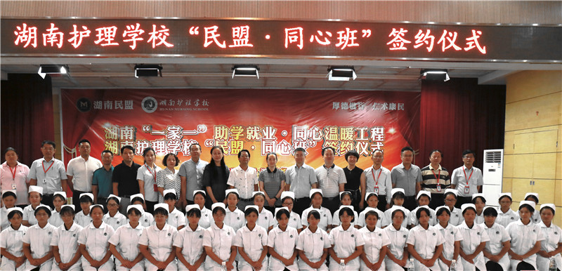 9月11日下午,湖南“一家一”助学就业•同心温暖工程“民盟•同心班” 签约仪式在湖南护理学校举行。