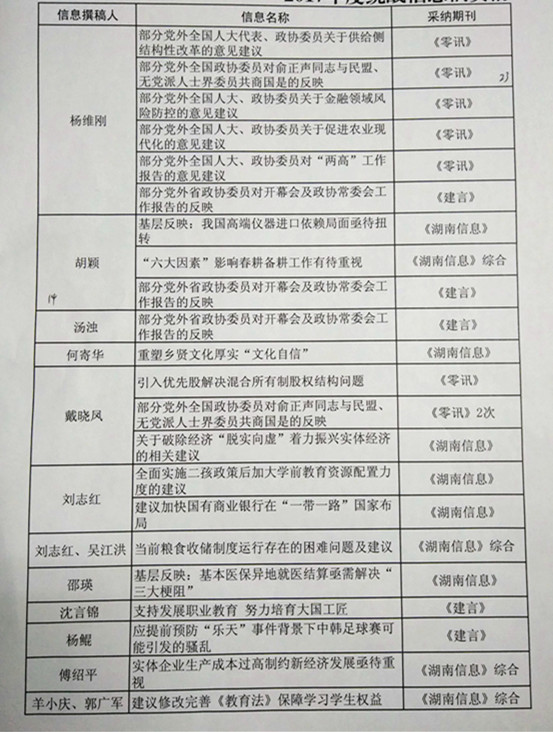 2017年,全省统一战线坚持以习近平新时代中国特色社会主义思想为指导,深入学习贯彻党的十九大精神和省委十一次党代会精神,全面落实中央和省委关于统一战线重大决策和部署,狠抓工作落实,有力推动了全省统战工作的创新发展。湖南民盟作为参政党地方组织,主动聚焦新时代统战工作理论与实践中的重大问题,及时反映新情况、新问题,提出新建议,努力发挥自身优势,积极参政议政,为国家和地区经济社会发展做出了重要贡献。