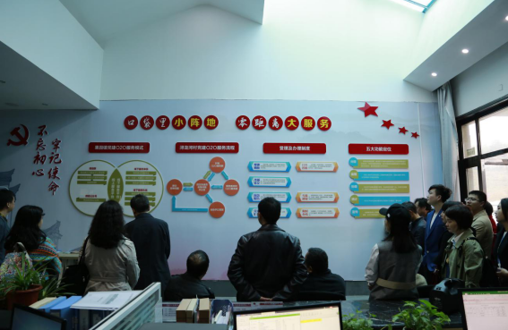 双方干部来到了浔龙河村党建服务中心,参观了该村的党建文化和村支两委办公场地,以及村民和党员学习场地。墙上展示的村支两委的严格的管理制度和先进的服务理念给大家留下了深刻的良好印象,党支部的战斗堡垒作用和党员的先锋模范作用使大家深受教育和启发。