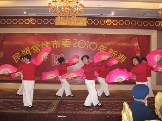 1月21日上午,常德市凯悦大酒店四楼宴会厅张灯结彩,喜气洋洋,120余名盟员欢聚一堂,欢歌笑语共度2010年新春团拜会。市政协副主席、盟市委主委傅绍平、中共市委统战部副部长李学明出席团拜会并作了重要讲话,盟市委对口联系单位――市劳动和社会保障局刘政华副局长、市规划局朱明副局长及市教育局负责人应邀参加。
