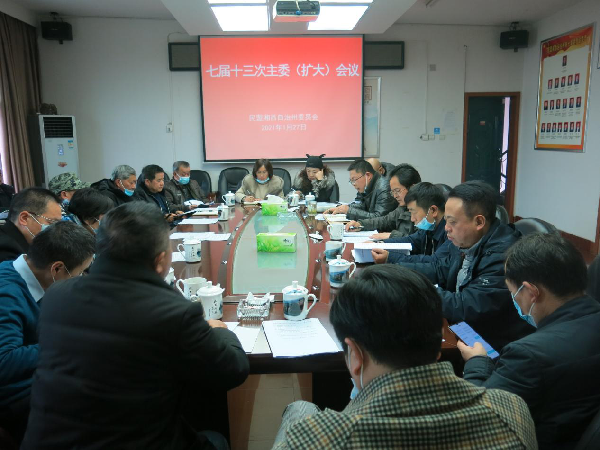 1月27日,民盟湘西州委会召开七届十三次主委(扩大)会议,全面总结2020年工作成绩和不足,安排部署2021年工作。民盟湘西州委会领导班子成员、各基层支部主委和机关全体干部参会。民盟湘西州委会秘书长、办公室主任符元江主持会议。