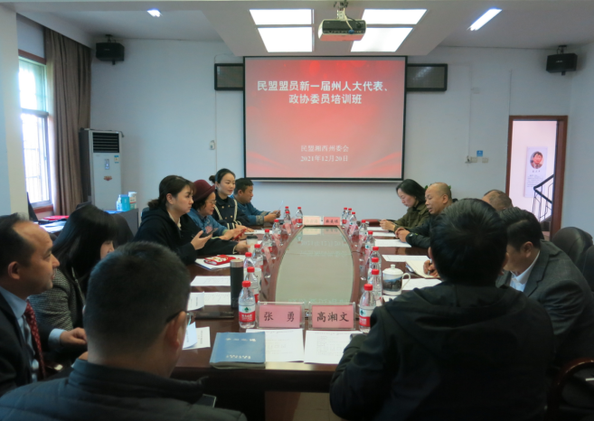 12月20日,在湘西州“两会”即将召开前夕,民盟湘西州委员会举办新一届盟员州人大代表、政协委员专题培训班,为新当选的盟员州人大代表、政协委员培训议案、提案撰写方法和履职知识。州人大常委会副主任、民盟湘西州委会主委高湘文出席并主持会议。