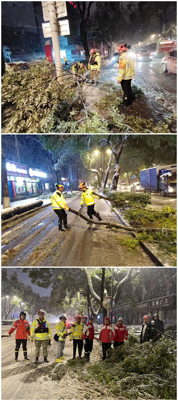 2月22日,湘潭普降暴雪,路面出现不同程度积雪、结冰现象,给人民群众出行造成不小影响,晚高峰时段严重拥堵。盟员志愿者刘佳、吕彬、彭晗辉等响应号召,对韶山路全线(砂子岭至建设南路)沿路的倒塌树木进行清理,救援十余辆打滑车辆,并协助交警疏导路面交通。经过五个小时奋战,路面障碍基本清除,助力群众安全出行。