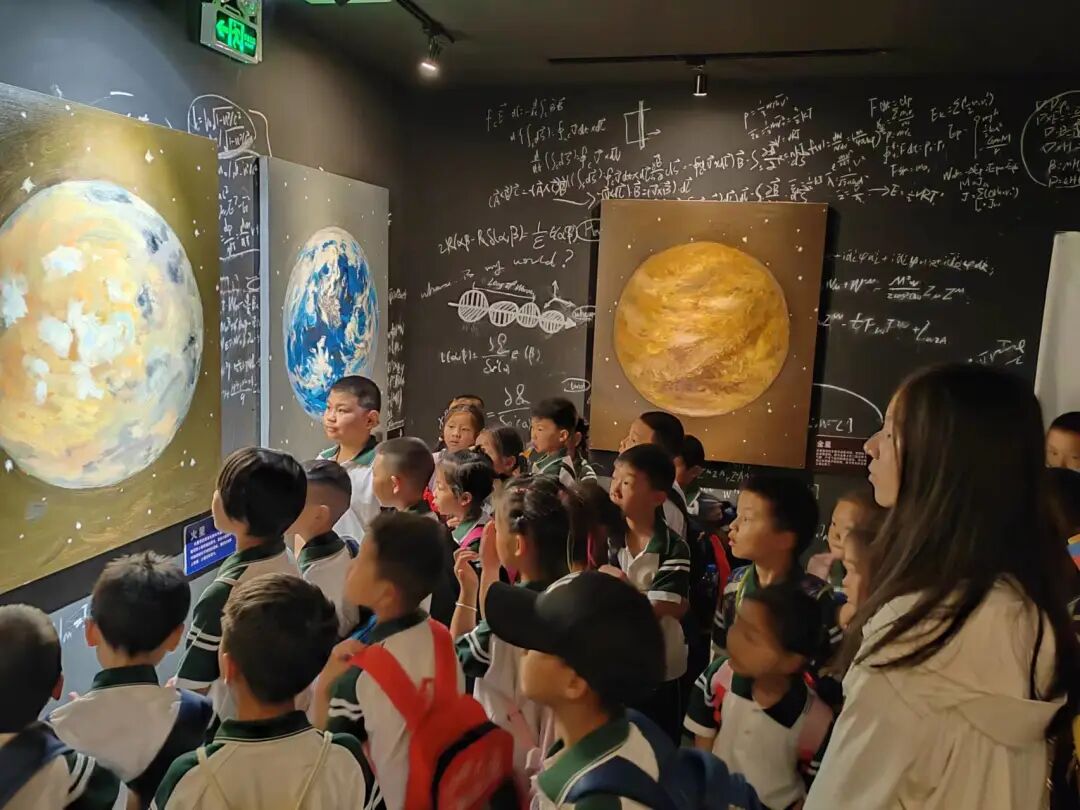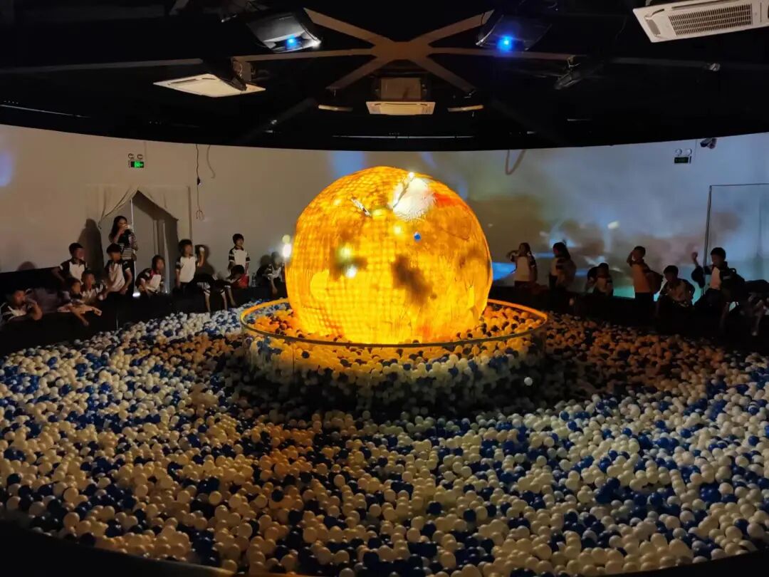走进星球乐园,孩子们跟随讲解员的解说,在科学家书房、穿越黑洞、太阳系光波球池、踏入月球、引力场域、时空隧道、回归地球、太阳系科普等项目,零距离探索宇宙奥秘。在寓教于乐的环境中,宇宙、星球、时间等充满神秘和科幻色彩的知识深深的烙印进了孩子们的心中。